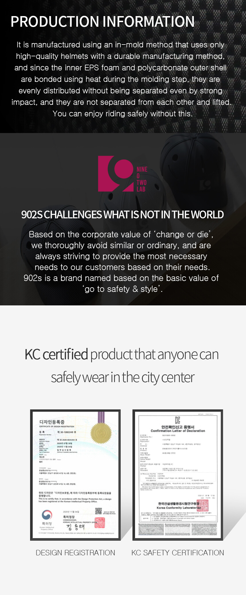 o KC certification, a Korean safety helmet certification.